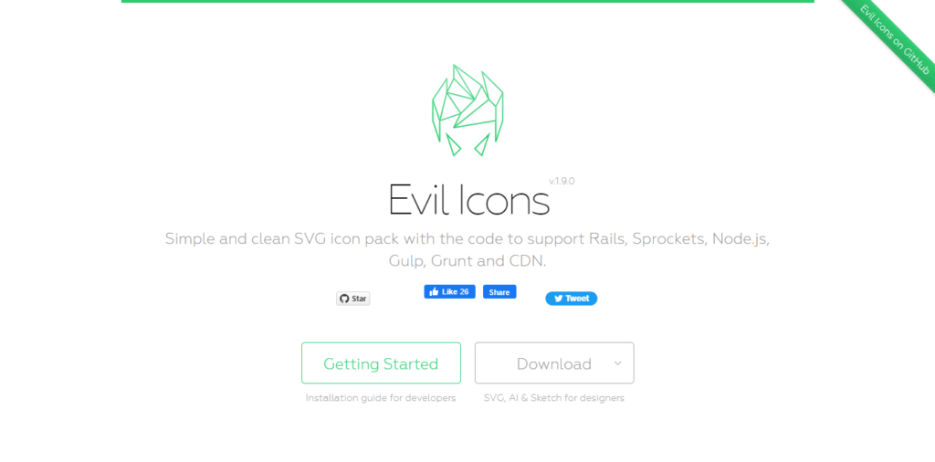 Evil Icons عبارة عن حزمة أيقونات SVG إبداعية ونظيفة جدًا ، وهي جاهزة للاستخدام في مشاريع Node.js و Rails و Sprockets و Gulp و Grunt.