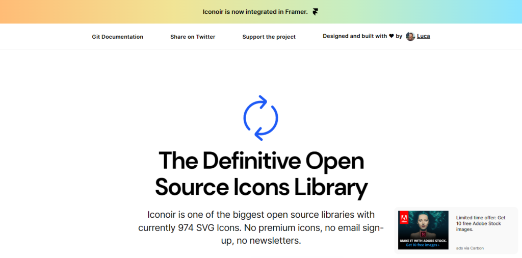 تقدم Iconoir نفسها على أنها “واحدة من أكبر المكتبات مفتوحة المصدر” ، ولديها 974 ايقونة حتى الآن ، وكلها مجانية للاستخدام في العديد من التنسيقات لـ Figma و React و Framer و SVG أو ايقونات الويب.